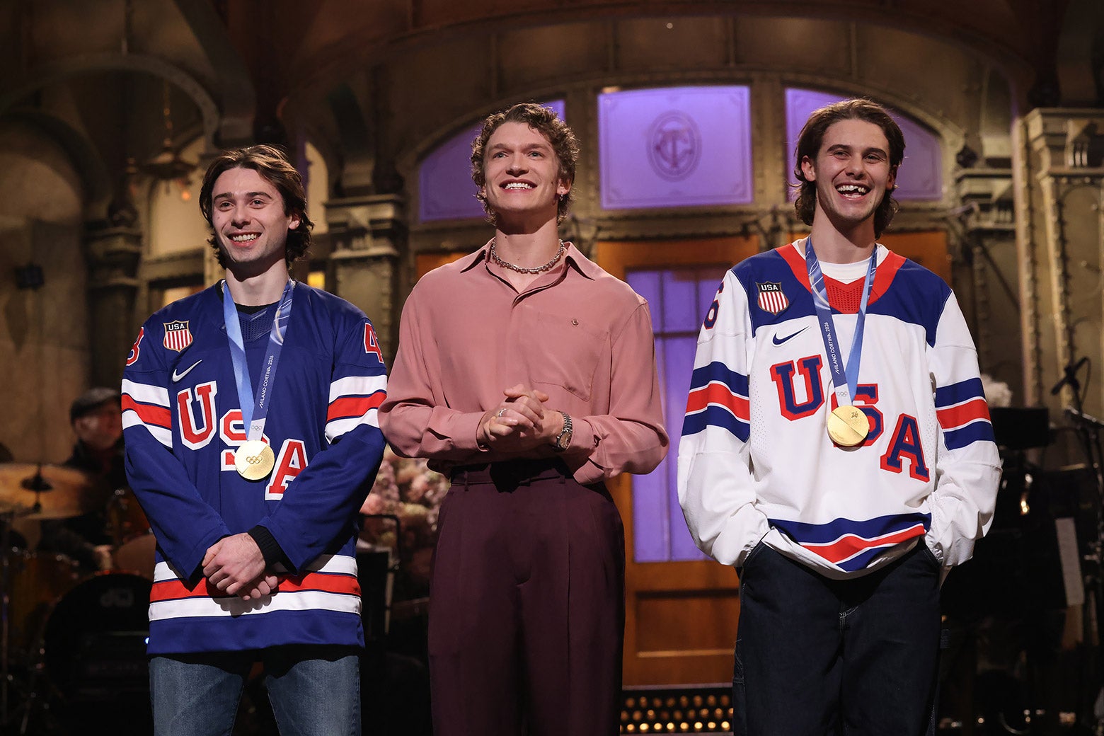 Trump quipped about inviting US women to White HouseKnight appears on SNL with Hughes brothers US ice hockey star Hilary Knight aimed a barb at Donald Trump during an appearance on this weekend’s Saturday Night Live.Knight led the US women to gold at last month’s Olympics, scoring the Americans’ first goal as they beat Canada in overtime. But after the US men’s team won gold Trump joked that he would have to invite the women’s team to the White House too or risk being impeached. Many of the men’