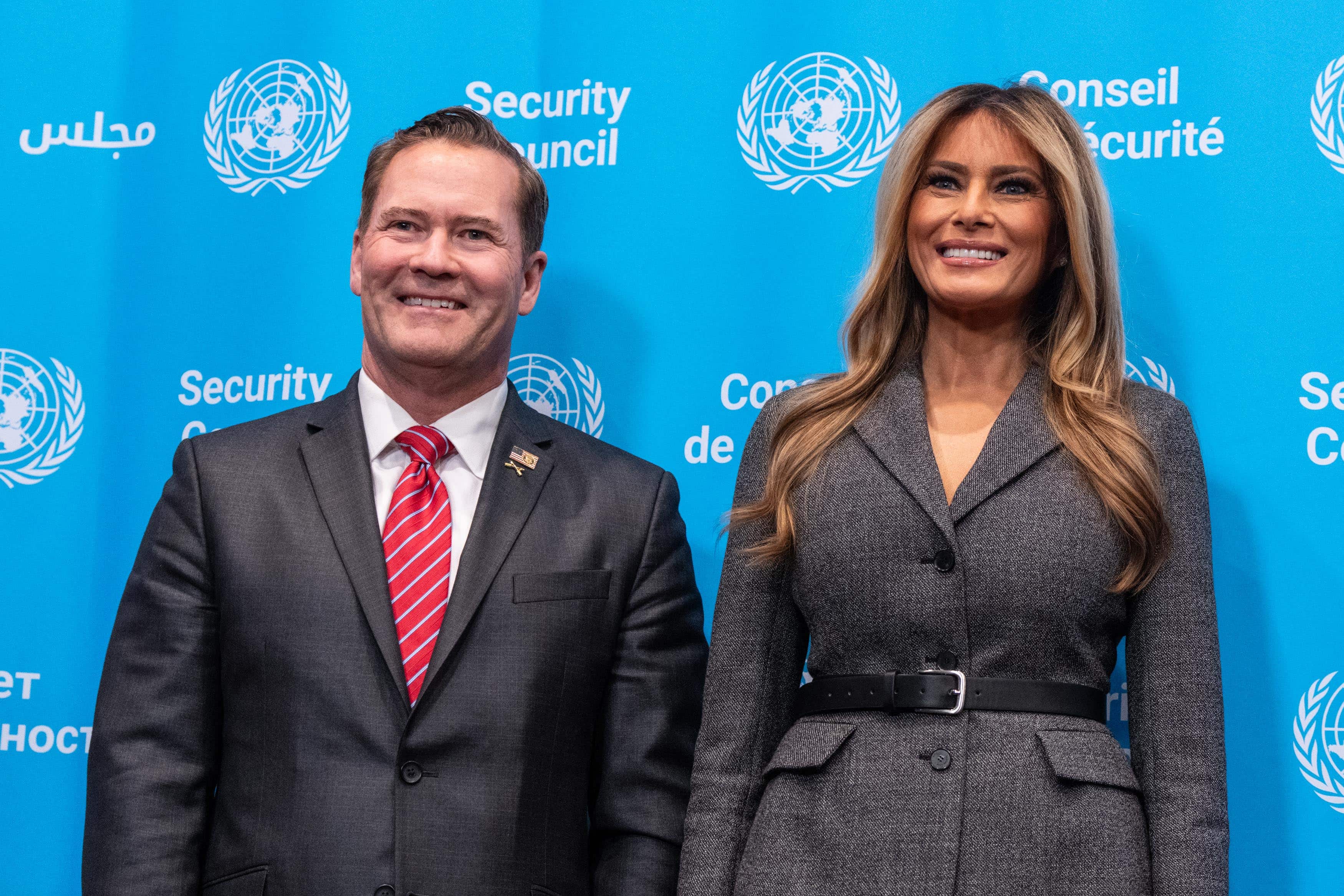 U.S. First Lady Melania Trump chairs a meeting of the United Nations Security Council at U.N. Headquarters in New York on March 2, 2026. (Timothy A. Clary/AFP via Getty Images)